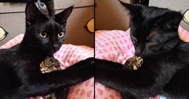 Fue así como un día por la mañana, un joven llamado Jason se encontró de frente en su jardín, en su residencia en Estados Unidos, con una hermosa gata negra que lo miraba expectante. Como seguramente estaba hambrienta, le puso un tazón con agua y otro con comida, que la gata no tardó en devorar.