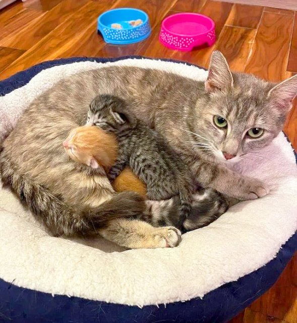 Gata esfinge no les perdona a sus dueños haberla separado de sus gatitos recién nacidos