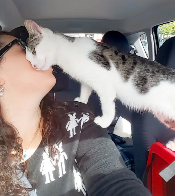 Gato rescatado de la calle no para de “hablar” con su nueva familia todo el día