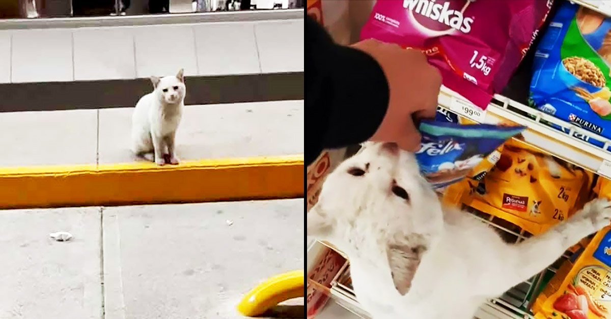 Gatito callejero roba juguetes de una tienda de mascotas para compensar la falta de amor