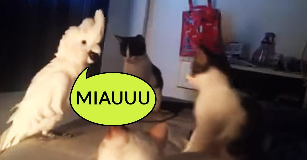 Granjero descubre que su loro rescatado adoptó a 3 gatitos huérfanos y los cuida en su nido