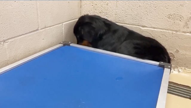 ¡Hay muchos ladridos y ningún mordisco! Los perros gruñones intentan intimidarse unos a otros a través de una puerta, pero en el momento en que queda abierta totalmente, la escena de ladridos termina abruptamente.