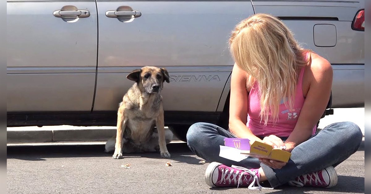 Cachorrito abandonado está tan agradecido de ser rescatado, que comparte su pan con los rescatistas